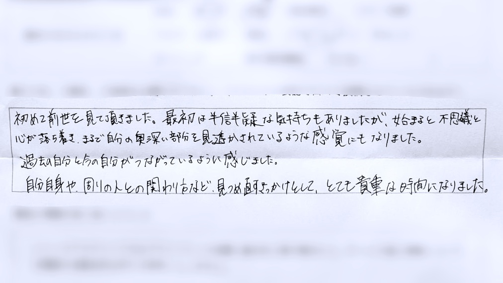 前世と今の自分とのつながりを感じ、とても腑に落ちました